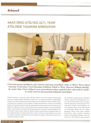 Kuruluşundan bu yana eğitim konusuna özel önem gösteren ve bu alanda birçok çalışmaya imza atan NAKO; Mimar Sinan Güzel Sanatlar Üniversitesi, Güzel Sanatlar Fakültesi Tekstil ve Moda Tasarımı Bölümü’nde yenilediği Örgü Atölyesi ile, öğrencilerin tekstil ve moda tasarımı konusundaki gelişimini destekliyor 1 Mart 2010 tarihinde, saat 17.30’da açılış kokteyli yapılan Örgü Atölyesi; El örgüsünün giderek daha da yaygınlaştığı ve dünya moda trendleri arasında hak ettiği yeri aldığı günümüzde, yetenekli öğrencilerimize dünyanın kapılarını açan, moda çizimleri ve model tasarımlarıyla, gençlerimizin uluslararası alanda kendilerini ifade etmelerine olanak sağlayan NAKO ile dokuma, baskı ve giysi tasarımı disiplinlerinden oluşan, amacı; malzeme bilgisi ve üretim yöntemlerini iyi bilen, tekstil ve moda endüstrisi için yaratıcı ve özgün çalışmalar yapabilecek beceride tasarımcı adayları yetiştirmek olan, ayrıca öğrencilerin yeteneklerini ve kişisel özelliklerini de geliştirmeyi gözeten Mimar Sinan Güzel Sanatlar Üniversitesi, Güzel Sanatlar Fakültesi Tekstil ve Moda Tasarımı Bölümü işbirliği ile çalışmalarını sürdürecektir.