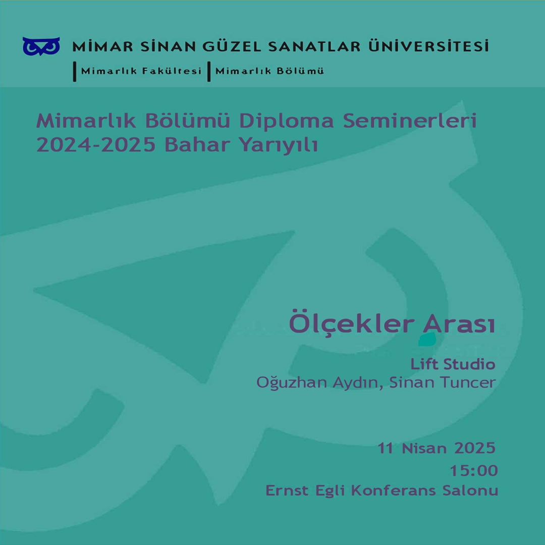 05 Aralık 2025, 15:30 Mimarlığın Farklı Ölçekleri 13 21 Kasım 2025, 15:30 Mimarlığın Farklı Ölçekleri 12 21 Kasım 2025, 13:00 Suluboya Eskiz Atölyesi 3: Hafızayı İz Sürmek 14 Kasım 2025, 09:00 Mimarlık ve Eğitim Kurultayı 31 Ekim 2025, 13:30 Mimarlık Bölümü Diploma Seminerleri 24 Ekim 2025, 14:30 Mimarlığın Farklı Ölçekleri 11 Daha Fazla
