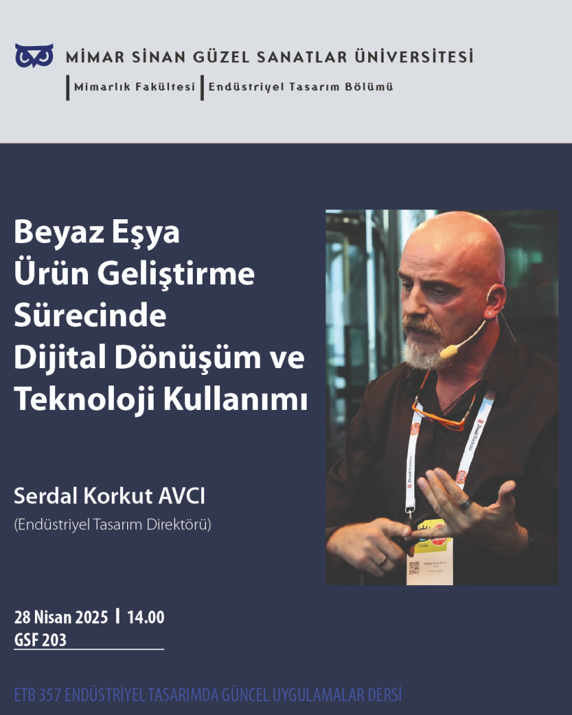 Endüstriyel Tasarım Bölümü tarafından düzenlenen “Beyaz Eşya Ürün Geliştirme Sürecinde Dijitalleşme ve Teknolojinin Kullanımı” başlıklı konferans 28 Nisan 2025 tarihinde verilecektir.