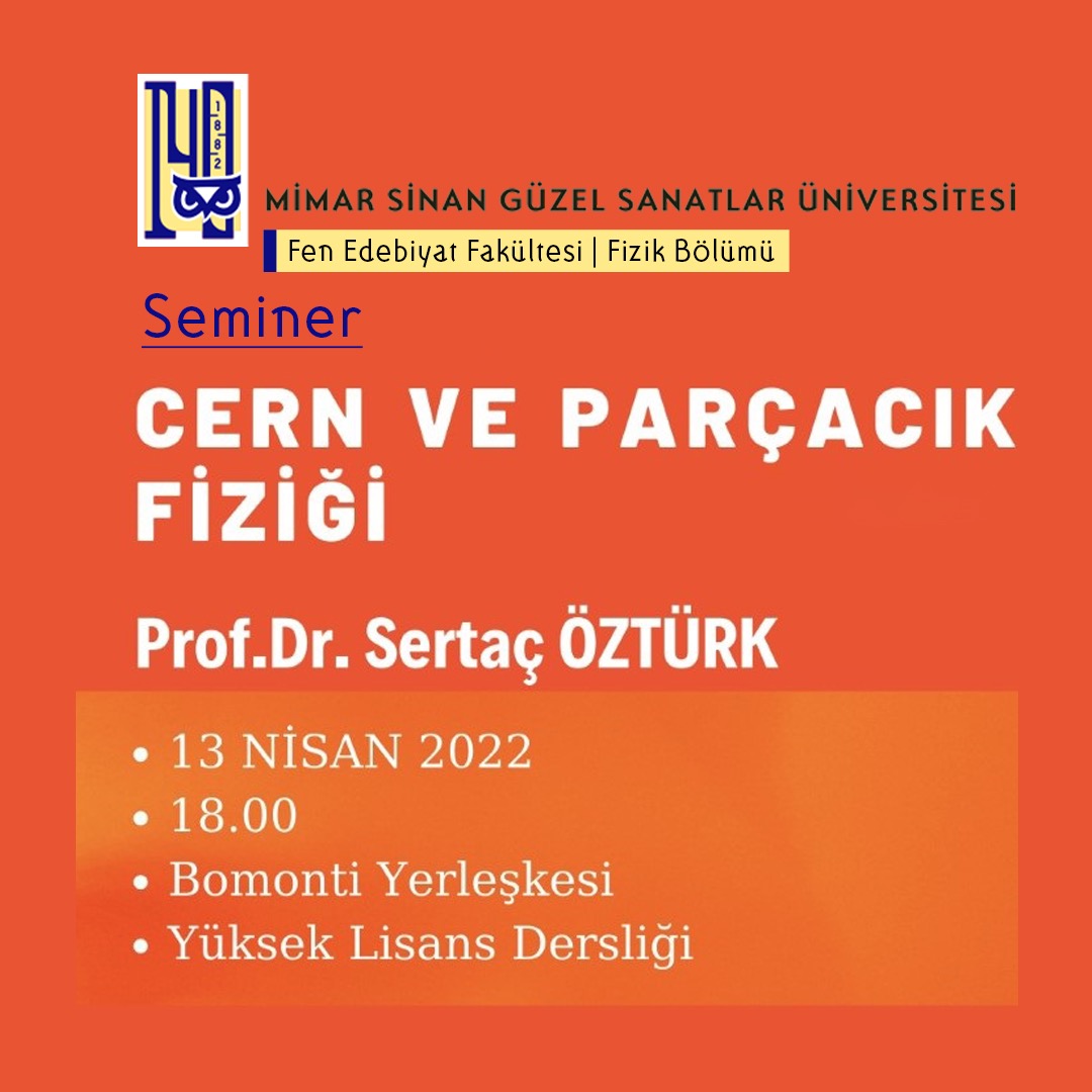 Fizik Bölümü tarafından yüksek lisans dersliğinde gerçekleşecek etkinliğe “CERN ve Parçacık Fiziği” başlıklı konuşması ile Prof. Dr. Sertaç Öztürk konuk olacaktır.