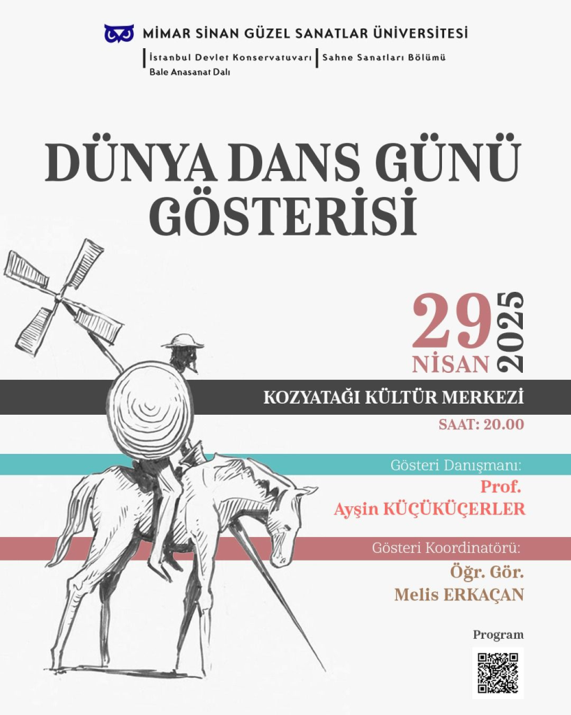 Bale Anasanat Dalı tarafından düzenlenen “Dünya Dans Günü Gösterisi” 29 Nisan 2025 tarihinde Kozyatağı Kültür Merkezi’nde yapılacaktır.