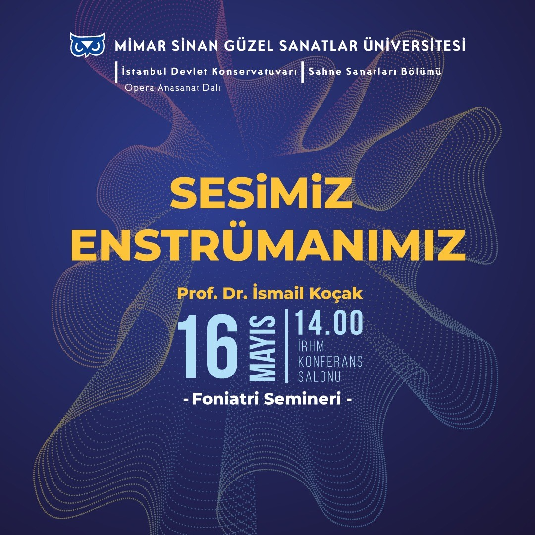 Opera Anasanat Dalı tarafından düzenlenen “Sesimiz Enstrümanımız” başlıklı seminer 16 Mayıs 2023 tarihinde İRHM Konferans Salonu’nda verilecektir.