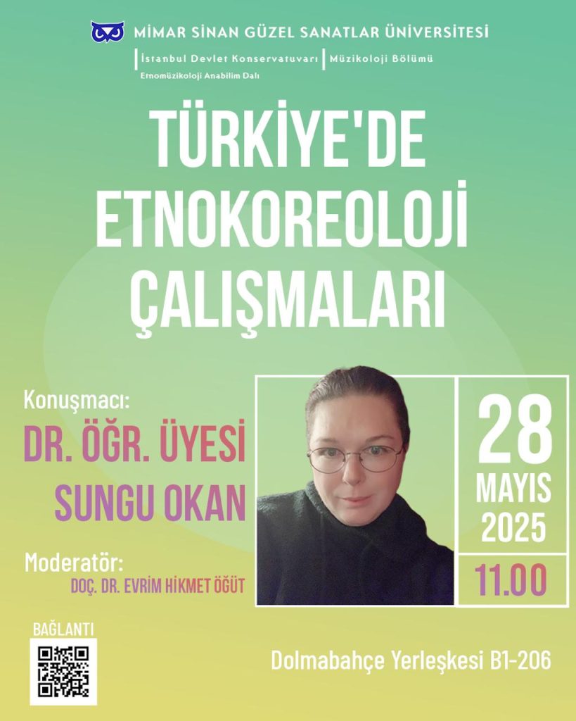 Müzikoloji Bölümü tarafından düzenlenen “Türkiye’de Etnokoreoloji Çalışmaları” başlıklı seminer 28 Mayıs 2025 tarihinde Dolmabahçe Yerleşkesi’nde verilecektir.