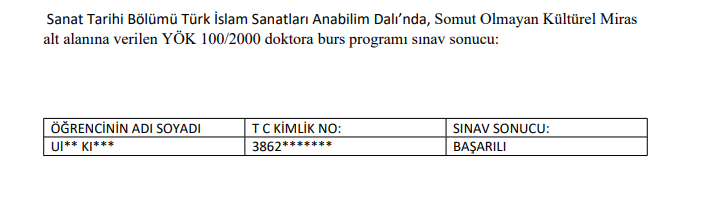 YÖK 100/2000 Doktora Burs Programı Sınav Sonucu